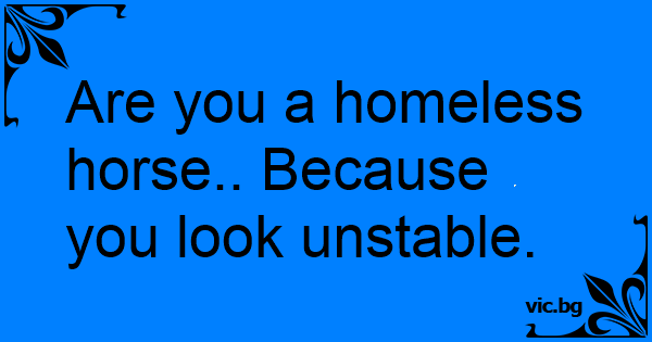 Are you a homeless horse.. Because you look unstable.