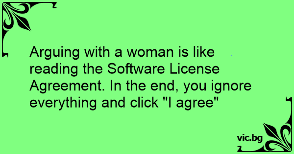 Arguing with a woman is like reading the Software License Agreement. In the end, you ignore everything and click "I agree"