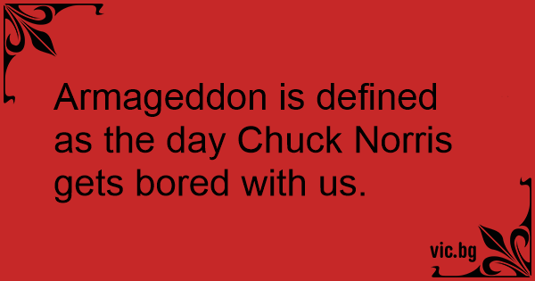 Armageddon is defined as the day Chuck Norris gets bored with us.