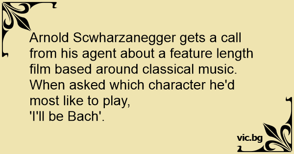 Arnold Scwharzanegger gets a call from his agent about a feature length film based around classical music. When asked which character he'd most like to play,