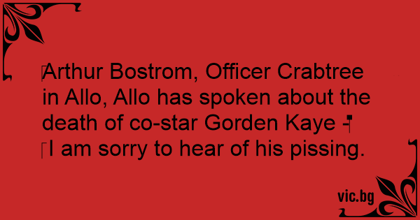 Arthur Bostrom, Officer Crabtree in Allo, Allo has spoken about the death of co-star Gorden Kaye -