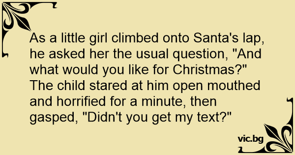 The child stared at him open mouthed and horrified for a minute, then gasped, "Didn't you get my text?"