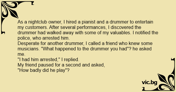 Desperate for another drummer, I called a friend who knew some musicians. "What happened to the drummer you had"? he asked me.