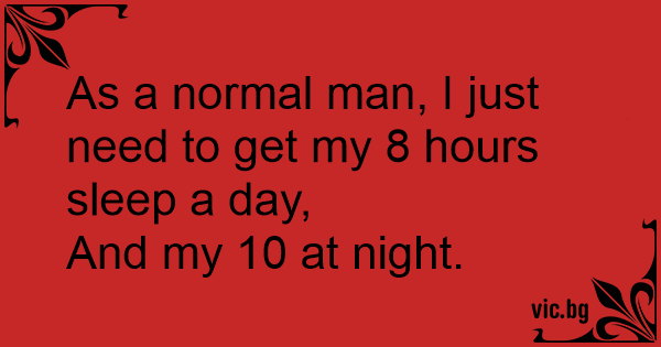 As a normal man, I just need to get my 8 hours sleep a day,