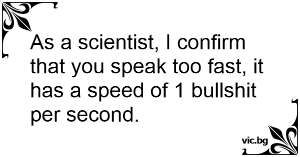 As a scientist, I confirm that you speak too fast, it has a speed of 1 вullshiт per second.