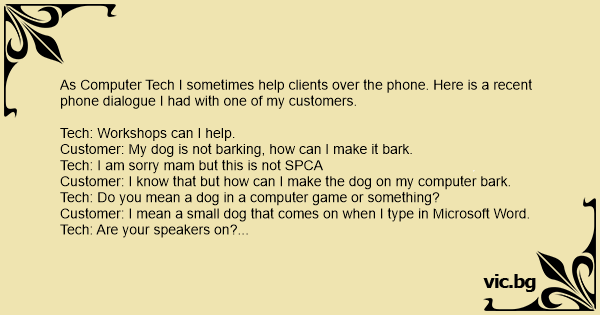 As Computer Tech I sometimes help clients over the phone. Here is a recent phone dialogue I had with one of my customers.
