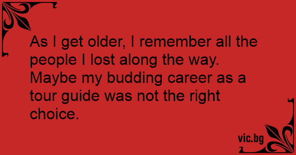 As I get older, I remember all the people I lost along the way. Maybe my budding career as a tour guide was not the right choice.