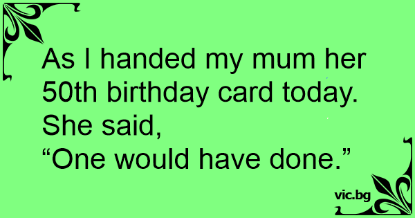 As I handed my mum her 50th birthday card today. She said,