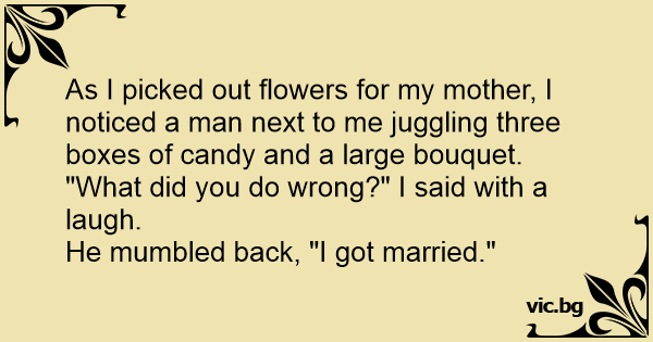 As I picked out flowers for my mother, I noticed a man next to me juggling three boxes of candy and a large bouquet.