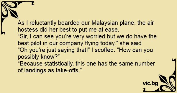 “Sir, I can see you’re very worried but we do have the best pilot in our company flying today,” she said