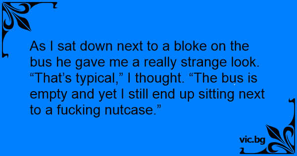 “That’s typical,” I thought. “The bus is empty and yet I still end up sitting next to a fuскing nutcase.”