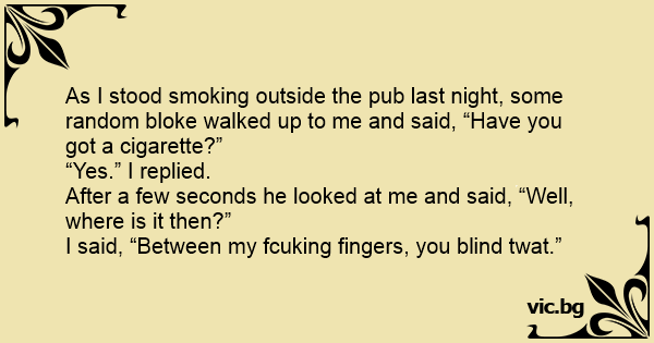 As I stood smoking outside the pub last night, some random bloke walked up to me and said, “Have you got a cigarette?”