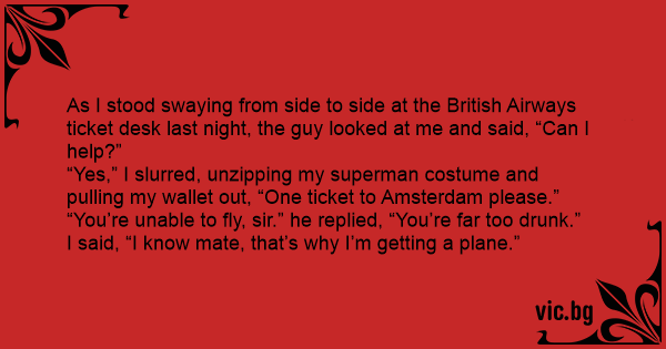 “You’re unable to fly, sir.” he replied, “You’re far too drunк.”