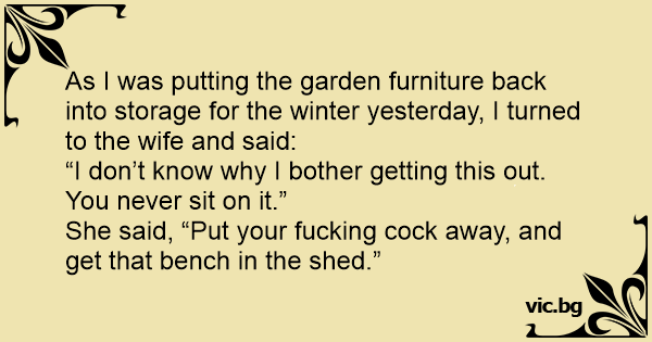 She said, “Put your fuскing соск away, and get that bench in the shed.”
