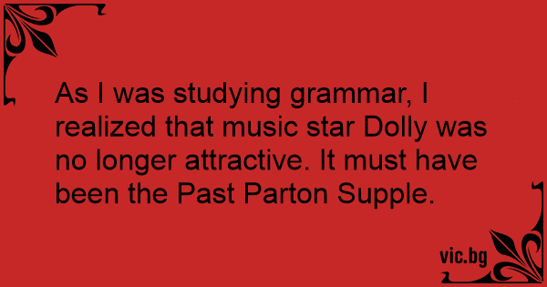 As I was studying grammar, I realized that music star Dolly was no longer attractive. It must have been the Past Parton Supple.
