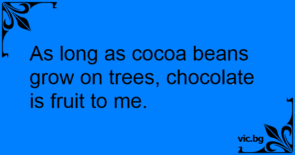 This is the best quote ever: Chocolate is very healthy because chocolate comes from coco beans. Coco beans come from a plant. A plant is healthy... So there you have it chocolate is very healthy.