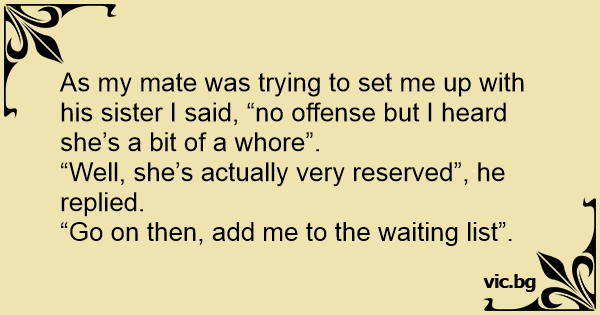 As my mate was trying to set me up with his sister I said, “no offense but I heard she’s a bit of a whоrе”.