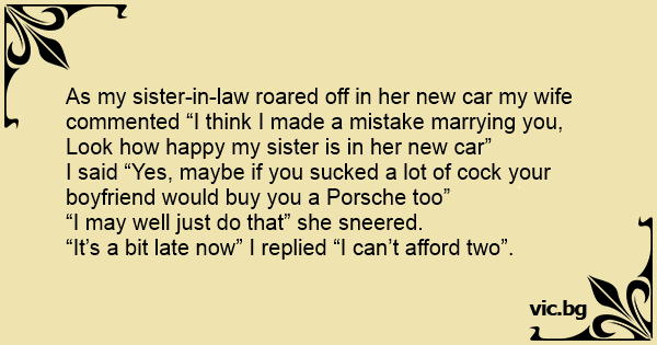 As my sister-in-law roared off in her new car my wife commented “I think I made a mistake marrying you, Look how happy my sister is in her new car”