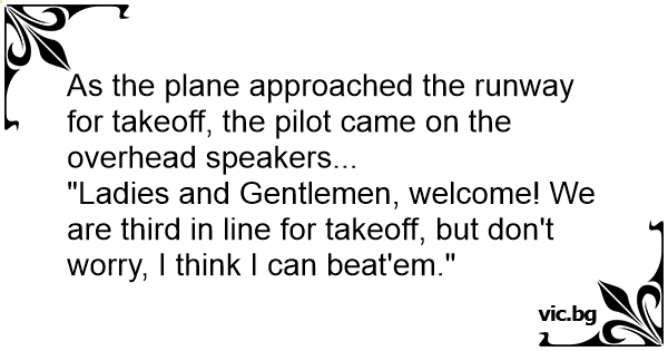As the plane approached the runway for takeoff, the pilot came on the overhead speakers...