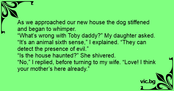 “It’s an animal sixth sense,” I explained. “They can detect the presence of evil.”