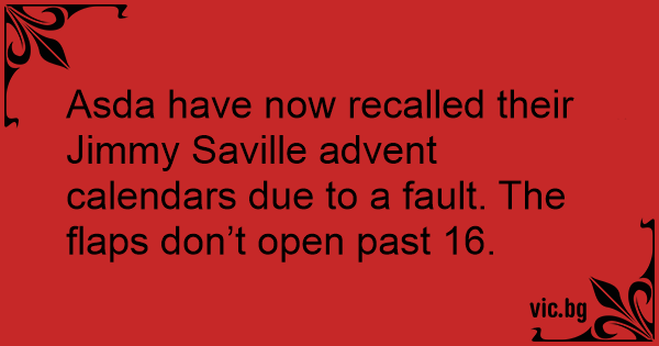 Asda have now recalled their Jimmy Saville advent calendars due to a fault. The flарs don’t open past 16.