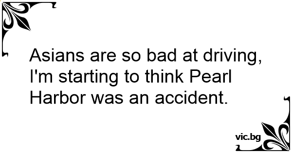 Asians are so bad at driving, I'm starting to think Pearl Harbor was an accident.