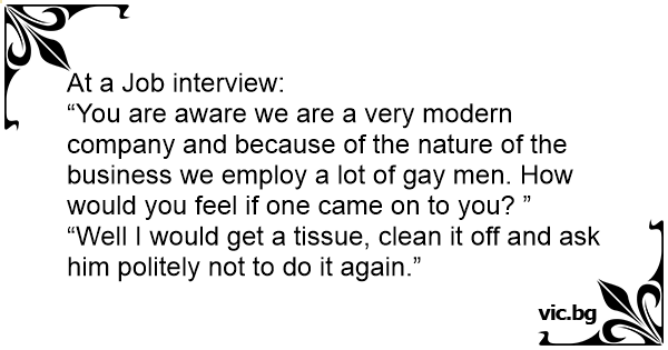 “You are aware we are a very modern company and because of the nature of the business we employ a lot of gаy men. How would you feel if one came on to you? ”