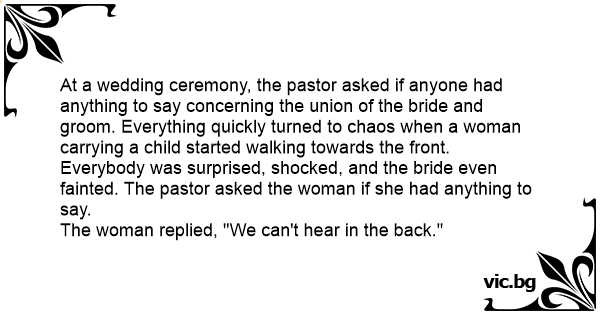 At a wedding ceremony, the pastor asked if anyone had anything to say concerning the union of the bride and groom. Everything quickly turned to chaos when a woman carrying a child started walking towards the front.
