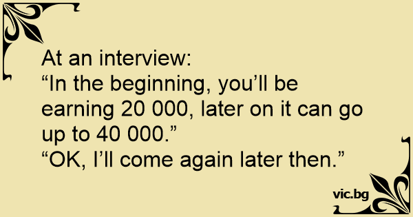 Im Job-Interview: "Am Anfang können Sie 2.500 Euro im Monat verdienen. Und später können es auch 5000 Euro werden." "Ok, dann komme ich später."