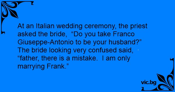 At an Italian wedding ceremony, the priest asked the bride, “Do you take Franco Giuseppe-Antonio to be your husband?”