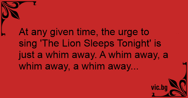 At any given time, the urge to sing 'The Lion Sleeps Tonight' is just a whim away. A whim away, a whim away, a whim away...
