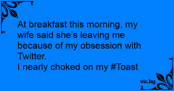 At breakfast this morning, my wife said she’s leaving me because of my obsession with Twitter.