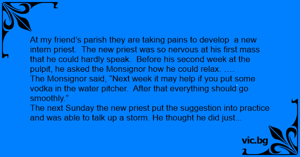 At my friend’s parish they are taking pains to develop a new intern priest. The new priest was so nervous at his first mass that he could hardly speak. Before his second week at the pulpit, he asked the Monsignor how he could relax. ….