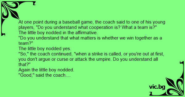 At one point during a baseball game, the coach said to one of his young players, "Do you understand what cooperation is? What a team is?"
