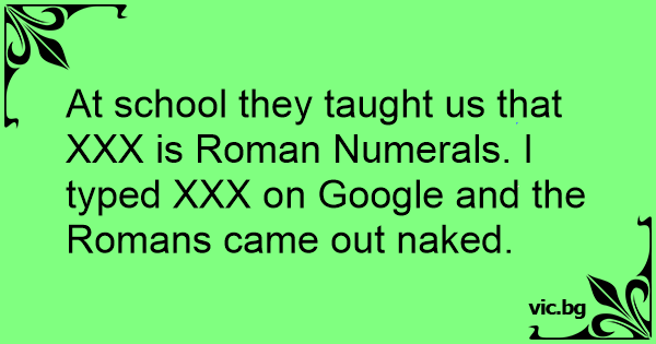 At school they taught us that XXX is Roman Numerals. I typed XXX on Google and the Romans came out nакеd.