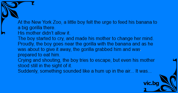 Proudly, the boy goes near the gorilla with the banana and as he was about to give it away, the gorilla grabbed him and was prepared to eat him.
