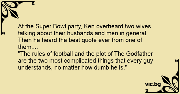 "The rules of football and the plot of The Godfather are the two most complicated things that every guy understands, no matter how dumb he is."