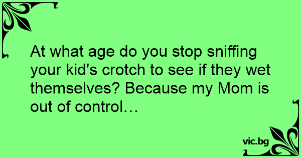 At what age do you stop sniffing your kid's crotch to see if they wet themselves? Because my Mom is out of control…