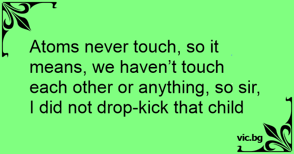 Atoms never touch, so it means, we haven’t touch each other or anything, so sir, I did not drop-kick that child