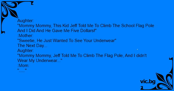 "Mommy Mommy, Jeff Told Me To Climb The Flag Pole, And I didn't Wear My Underwear..."