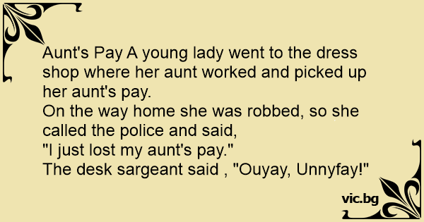 The desk sargeant said , "Ouyay, Unnyfay!"