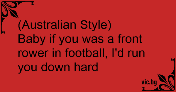 Baby if you was a front rower in football, I'd run you down hard