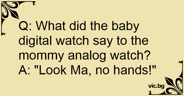 Q: What did the baby digital watch say to the mommy analog watch?