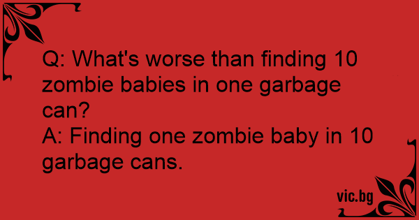 Q: What's worse than finding 10 zombie babies in one garbage can?