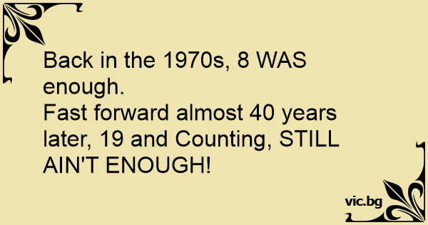 Fast forward almost 40 years later, 19 and Counting, STILL AIN'T ENOUGH!