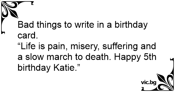 “Life is pain, misery, suffering and a slow march to death. Happy 5th birthday Katie.”