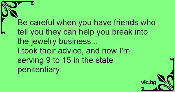 I took their advice, and now I'm serving 9 to 15 in the state penitentiary.