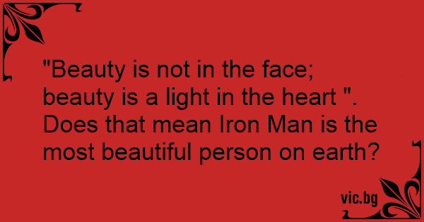 "Beauty is not in the face; beauty is a light in the heart ". Does that mean Iron Man is the most beautiful person on earth?