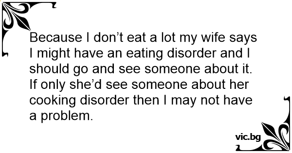 Because I don’t eat a lot my wife says I might have an eating disorder and I should go and see someone about it.