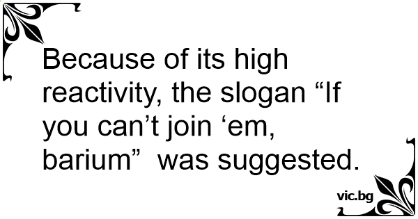 Because of its high reactivity, the slogan “If you can’t join ‘em, barium” was suggested.